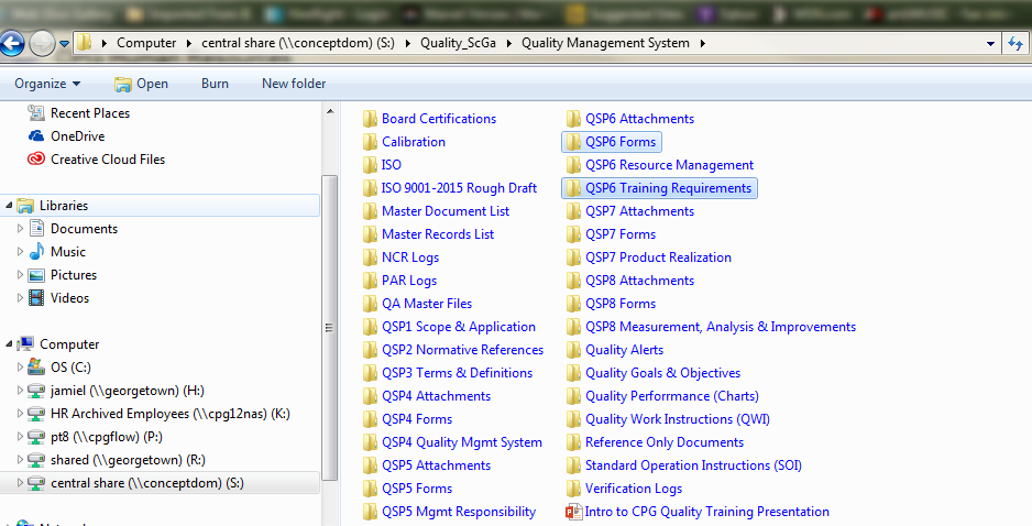 All quality training forms are located under the QSP6 heading. You may find your region's quality forms in the address bar in the screenshot below: